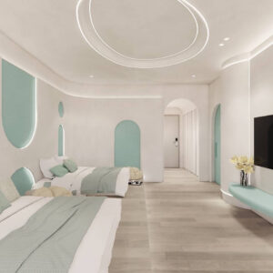 木質調與綠植點綴的空間,搭配大片落地窗,讓陽光灑落其中,打造舒適療癒的氛圍。房內設有懶人吊椅、迷你冰箱、50吋液晶電視,並提供Netflix與藍牙音響,讓您享受極致放鬆。浴室配備木質泡澡浴缸與智能馬桶,為您帶來溫暖舒適的住宿體驗。在這裡,感受時間緩慢流動,享受專屬於自己的寧靜時光。