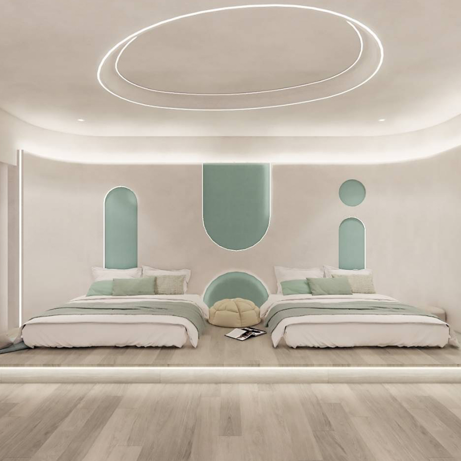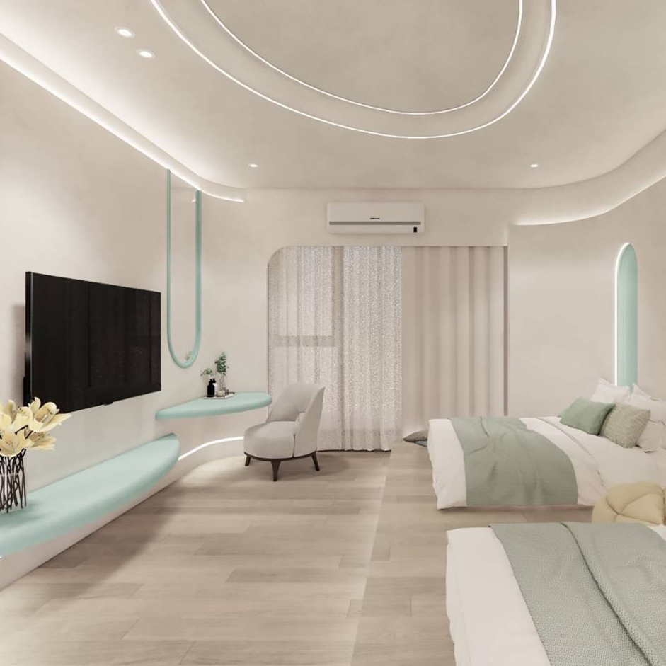 木質調與綠植點綴的空間,搭配大片落地窗,讓陽光灑落其中,打造舒適療癒的氛圍。房內設有懶人吊椅、迷你冰箱、50吋液晶電視,並提供Netflix與藍牙音響,讓您享受極致放鬆。浴室配備木質泡澡浴缸與智能馬桶,為您帶來溫暖舒適的住宿體驗。在這裡,感受時間緩慢流動,享受專屬於自己的寧靜時光。